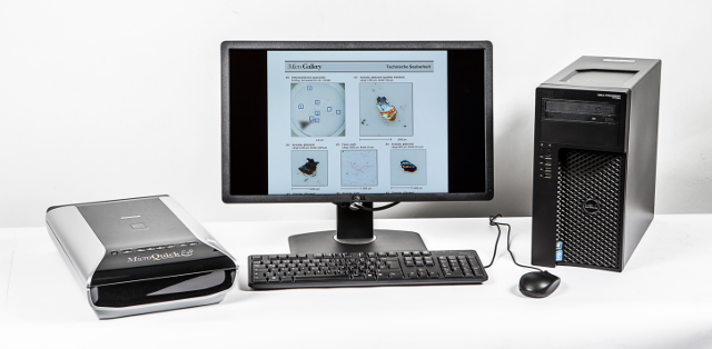 高分辨率掃描儀(測試濾膜上粒子的數量、尺寸大小、形狀和光澤度),平板反射掃描儀調制解調器,包括Windows計算機、用于粒子分析和后期修正的軟件,MicroReporter自動編譯出檢測報告。
